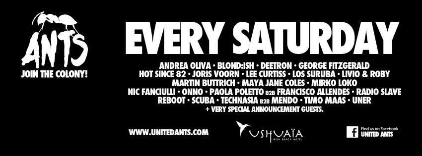 Starting the 1st of June..every saturday at Ushuaia will be celebrated Ants! a show with some of the best underground music players in the world.