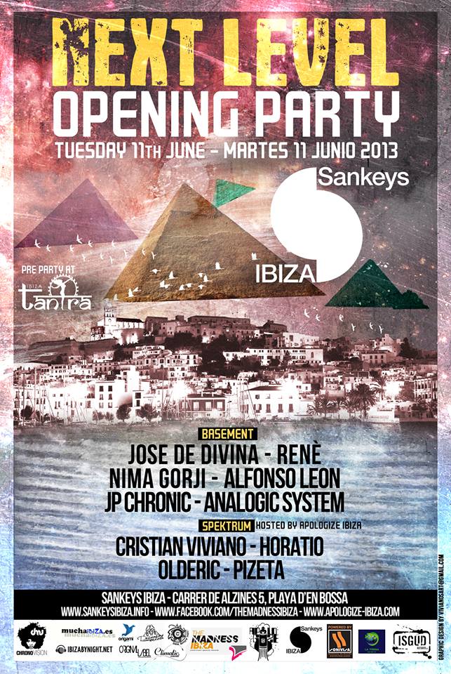 Sankeys presents: Next level..opening party… with Jose De Divina -Renè- Nima GoriJ – Alfonso Leon. Analogic System, Cristian Viviano and more… this is the poster of the event!