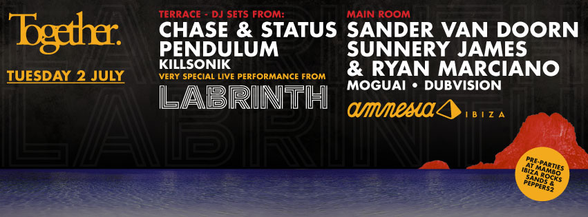 Amnesia presents “Together” .. with a top line-up… Chase and Status, Pendulum, Sander Van Doorn, Ryan Marciano… here you have the poster of the night..