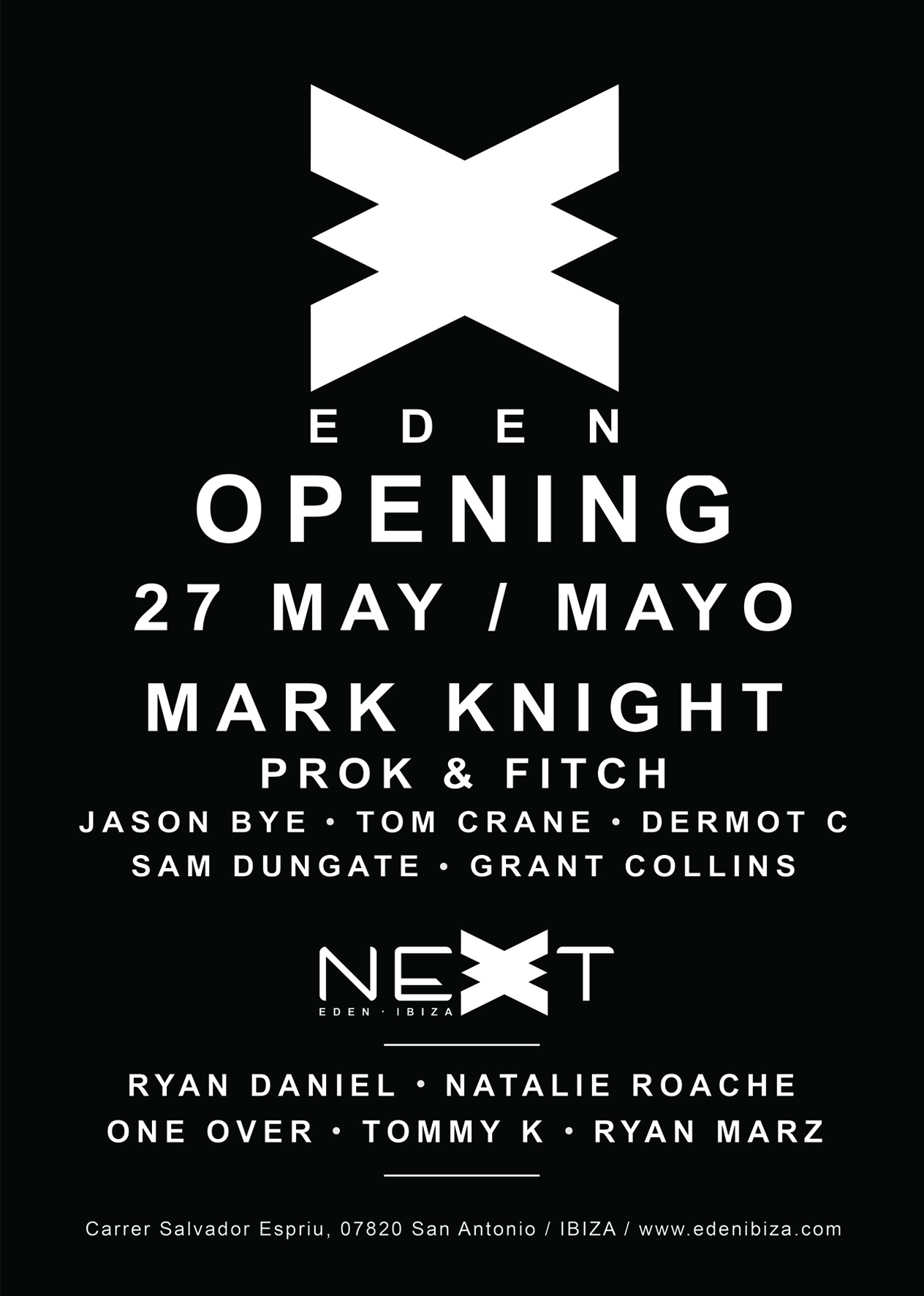 Eden Ibiza has announced the line up for the opening party next 27th of May!