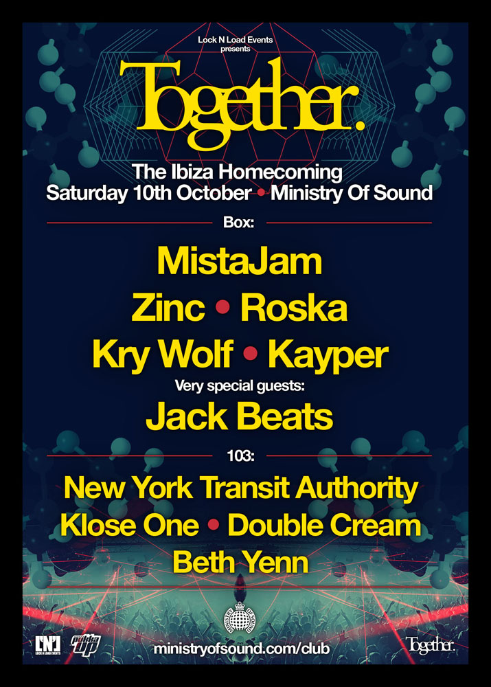 Heading up the bill is Together resident and influential tastemaker MistaJam. Jam currently hosts 6 weekly radio shows on BBC Radio 1 and 1Xtra networks.