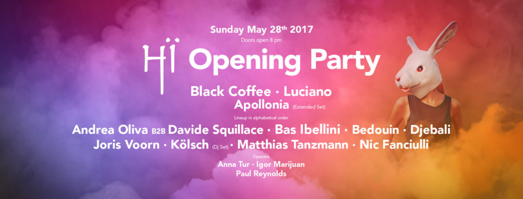 Hï Ibiza has revealed further names for the opening party: Bedouin, Anna Tur from ibiza Global radio, Paul Reynolds & Igor Marijuan were added to a strong list of dis that already included names as Luciano, Black Coffe, Apollonia, Andrea Oliva, davide Squillace, Joris Voorn, Nic Fanciulli, Djebali, Bas Ibellini, Matthias Tanzmann, Kolsch.