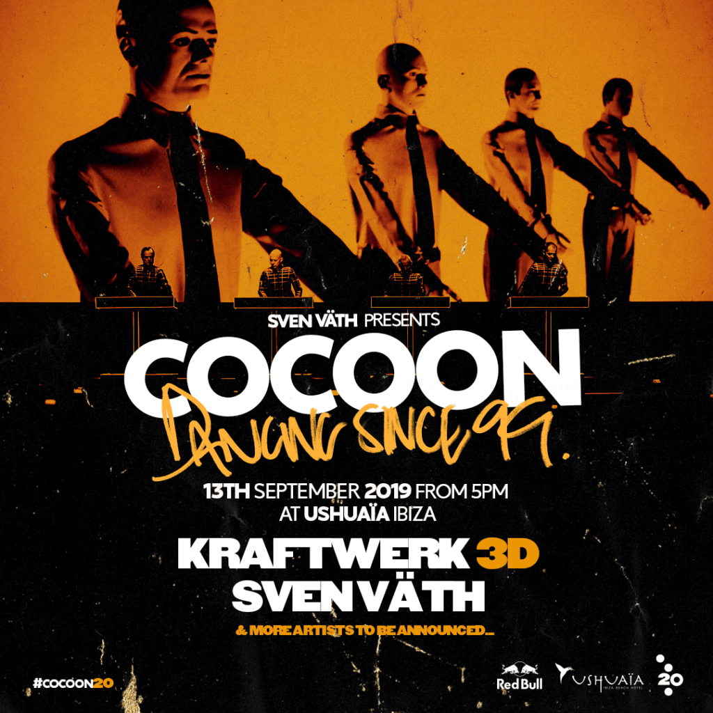Ushuaïa Ibiza reveals Sven Väth’s COCOON20 is set to take over the venue for a massive, unprecedented Ibiza occasion on September 13th. Väth presents his announcement to date, unveiling his favourite giants Kraftwerk will make their debut Ibiza performance at the island’s iconic open-air venue. Kraftwerk will bring their inimitable 3D performance to Ushuaïa Ibiza as they celebrate 20 years of COCOON.