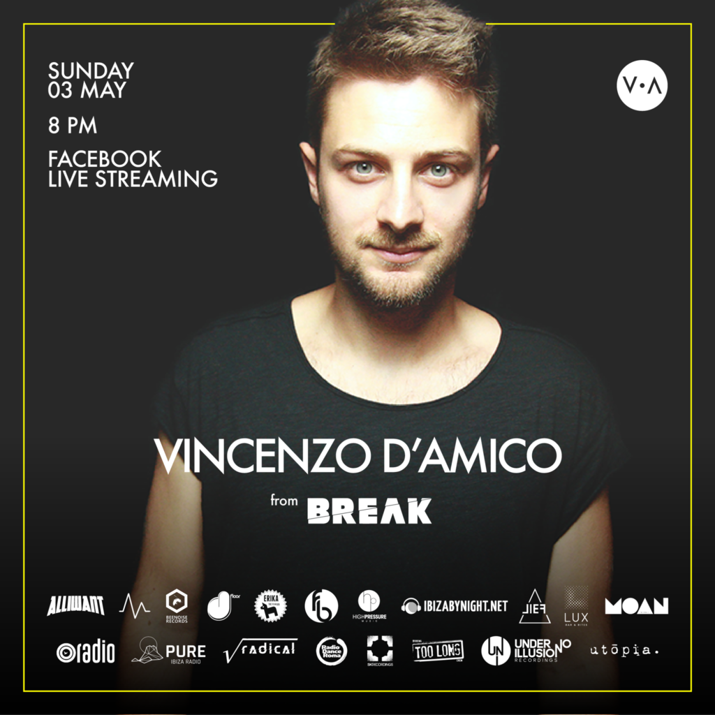 Vincenzo, appreciated dj and producer of Break, will play Sunday, May 3rd, at 8 pm and said us:”I have been waiting before playing a streaming live set. Now that things are getting better I am very happy to be here with my music. I hope that my friends and supporters will enjoy it…it will be an hour of house sounds… stay tuned!”