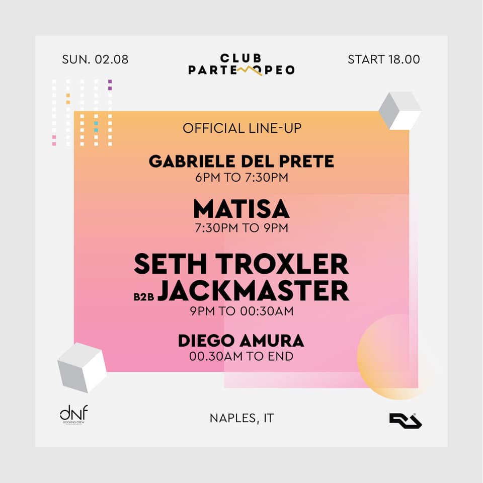 Seth Troxler b2b Jackmaster, Matisa, Gabriele Del Prete, Diego Amura will play at Club Partenopeo (Naples)!