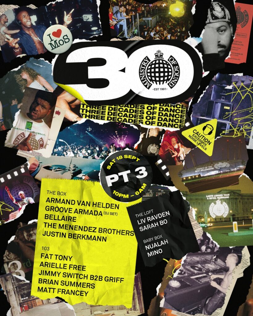 Ministry of Sound, the legendary London location, celebrates 30th Anniversary w/ Armand van Helden, Groove Armada, DJ Zinc, Paul van Dyk, Judge Jules and many more!
