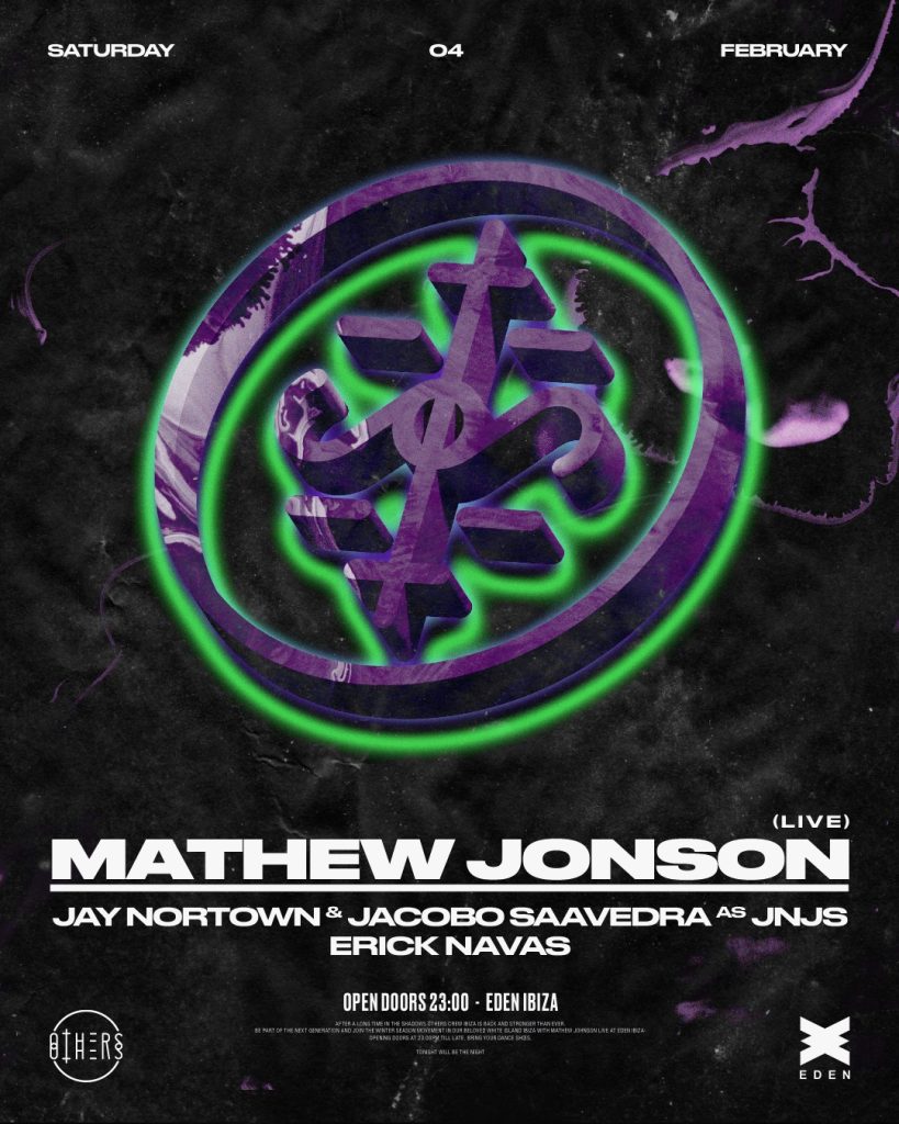 Saturday February 4th EDEN Ibiza hosts Mathew Johnson (live), Jay Nortown & Jacobo Saavedra as JNJS, Erick Navas.