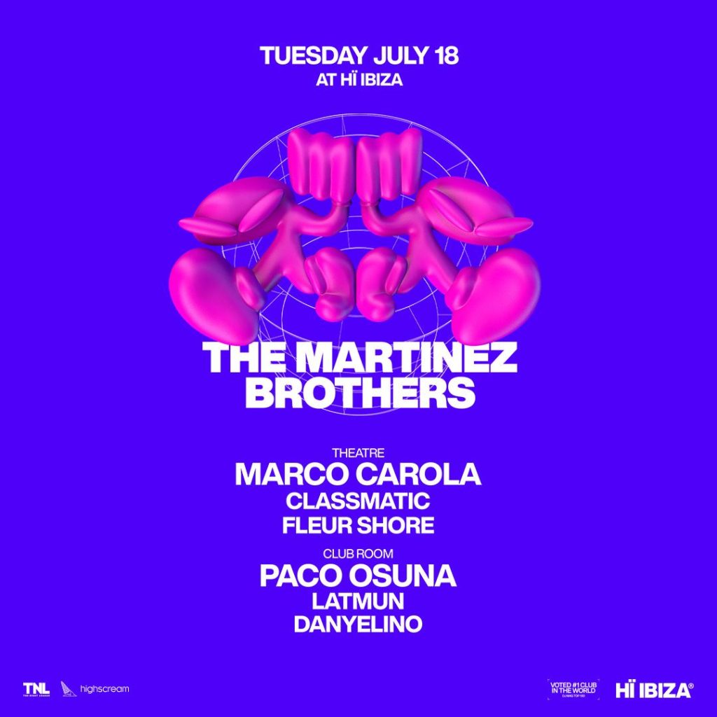 Tonight, Tuesday, July 19th Hï Ibiza presents The Martinez Brothers, Marco Carola, Classmatic, Fleur Shore in the Theatre.