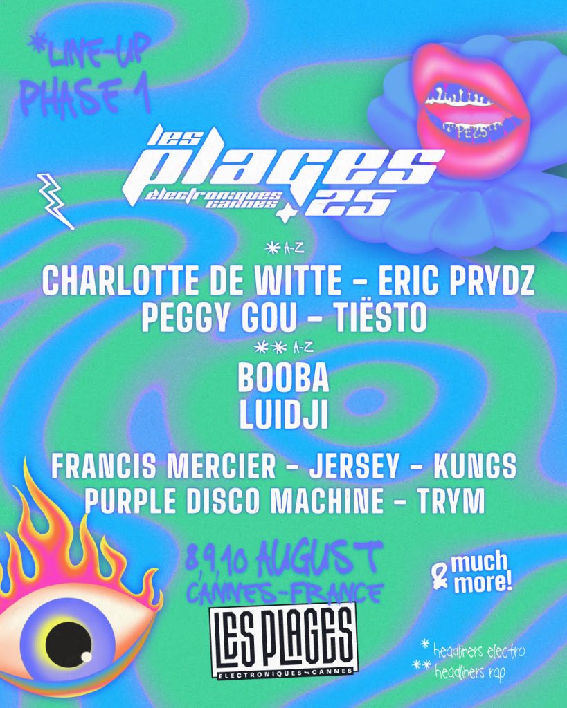 The organizers said:”Les Plages Électroniques are back for their 18th edition, ready to break records once again. After three sold-out days in 2024 with 60,000 attendees, 90 artists and performers, and countless hours of live music still resonating on the beach of the Palais des Festivals in Cannes, the festival is unveiling the first names for its line-up—all set to perform on the festival’s Main Stage.