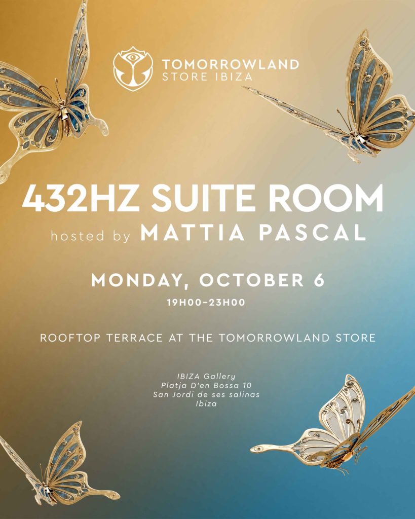 432HZ Suite room hosted by Mattia Pascal at Tomorrowland Store Ibiza will be hosted on Monday, October 6th, 2025!