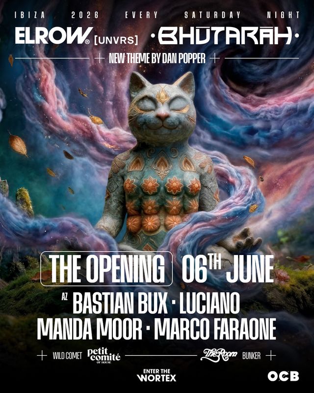 elrow at [UNVRS] Ibiza reveals the opening party “Bhūtarāh” with Luciano, Manda Moor, Marco Faraone, Bastian Bux!