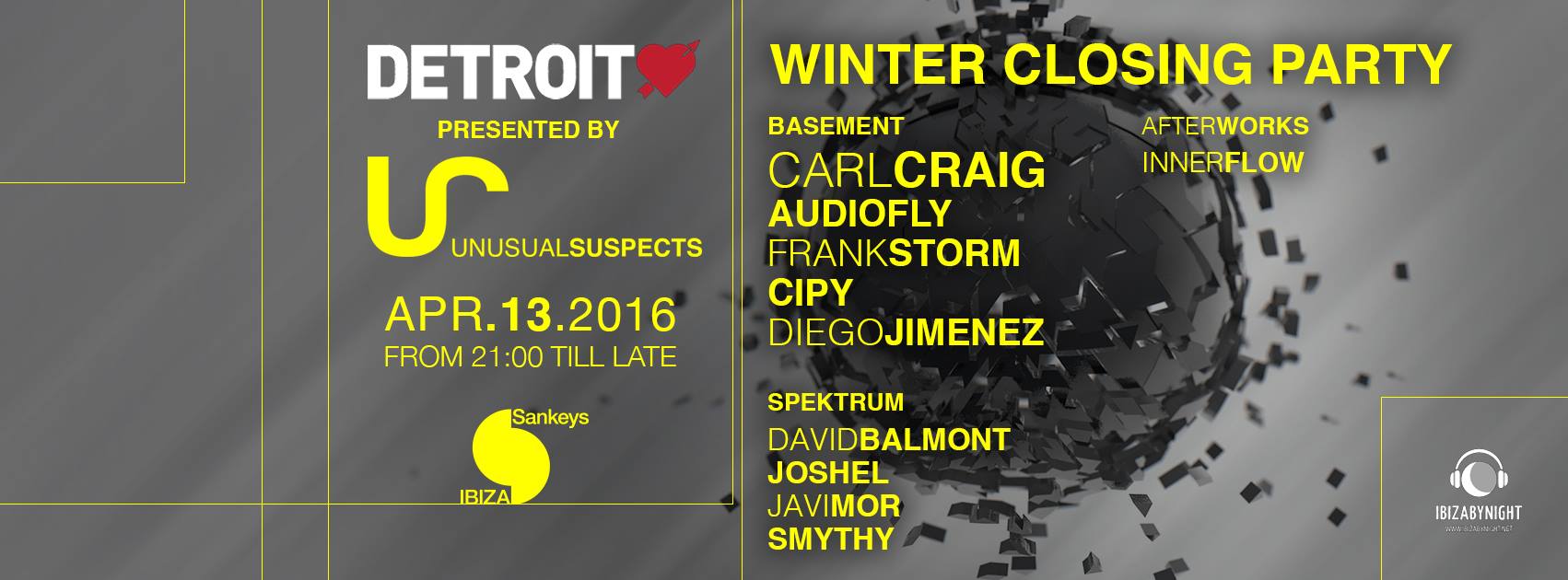 Next Wednesday 13th of April, Unusual suspects presents the Winter closing party at Sankeys Ibiza!